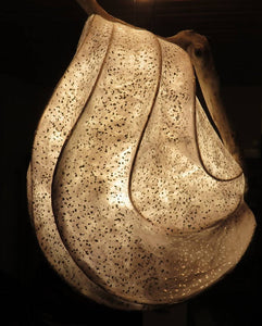 This summer I spent 2 back to back weekend doing events in Toronto and I started this light sculpture. I finally finished it 2 months later. The sparkle is meant to represent the city's lights that highlight the diversity it shines on. Measures 18”h x 14”d x 13”w
