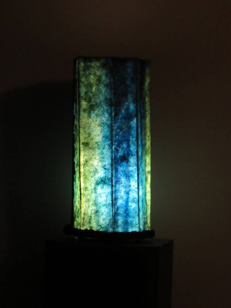 Switchin' it up a little with some gorgeous coloured rice paper on an octagonal base. Measures 5 ½” x 5 ½” x 13”h