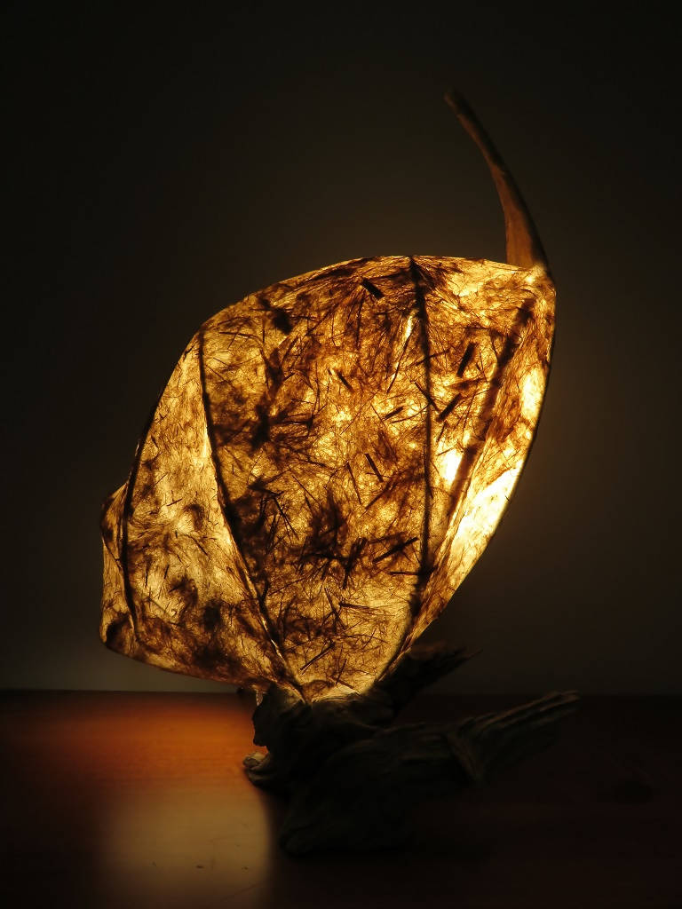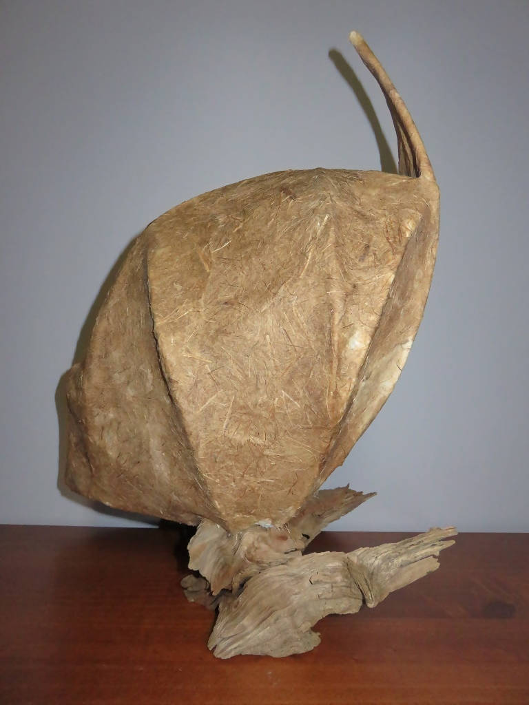 Is it someone 'flipping the bird'? Is it a Jurassic dino egg? Whatever the eye sees, I needed to use rice paper with my handmade cattail fiber paper on top all sitting on a tiny piece of driftwood.