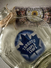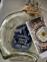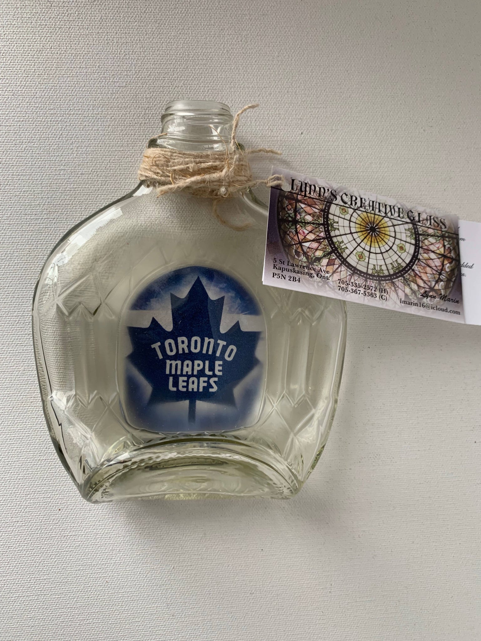 SLUMPED GLASS BOTTLE WITH HOCKEY LOGO