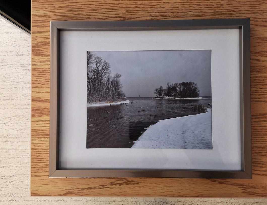 Duck amidst a snow squall .... The mouth of the Lavase, North Bay, ON.